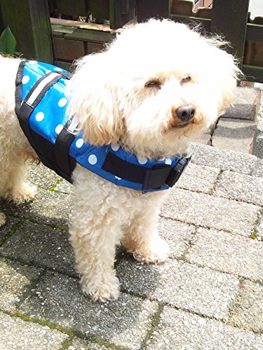 ワンちゃん用 ライフジャケットです。デザインも水玉模様がとってもキュートな商品となっております。