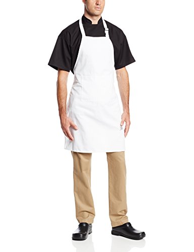 San Jamar 401BA Poly Cotton Front Pocket Bib Apron with Adjustable Neckstrap, 34" Length x 25" Width, White