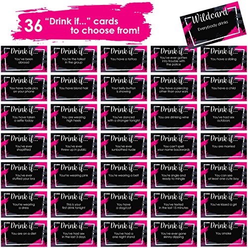 - FUN & ENTERTAINING: Perfect drinking game for a girls night out, bachelorette, birthday or sorority party. 36 “Drink if…” questions make this game a great ice breaker for girls and will reveal interesting information about your friends you might not have known before. These questions were specifically designed to make your party fun, from casual to more risqué cards. This game is a great fit for girls ready to have a good time and discover funny stories.