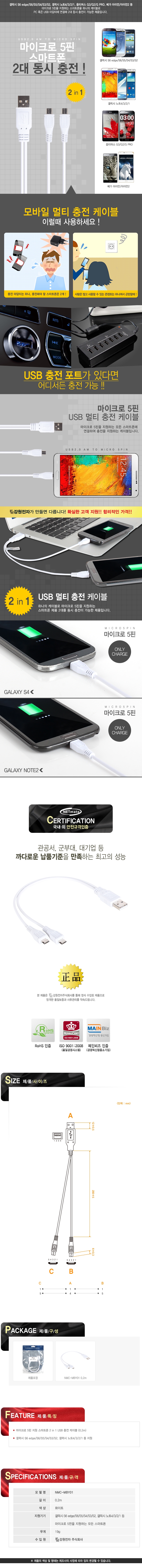 Smartphone micro 5 pin 2 in 1 charge-only cable