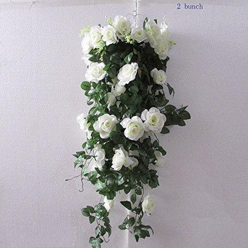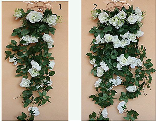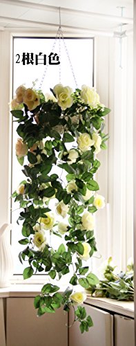 Get Orange 100cm Artificial Rose Silk Flower Green Leaf Vine Garland Home Wall Party Decor Wedding Garden Decoration (White)