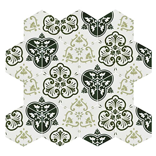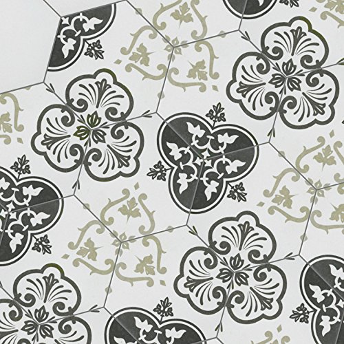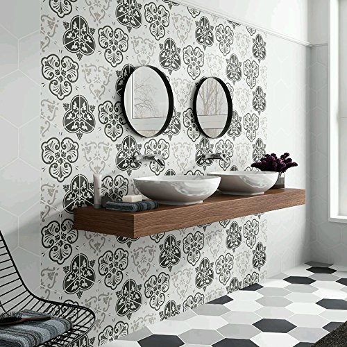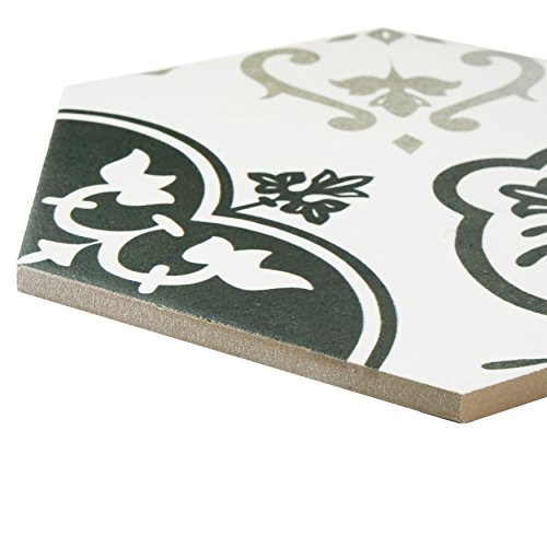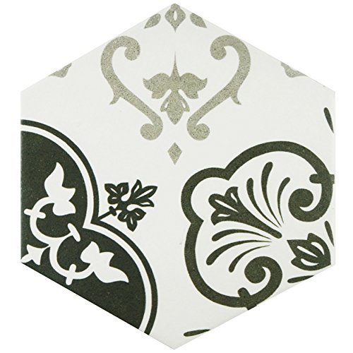 SomerTile FCD10FMX Fantazia Hex Porcelain Floor and Wall Tile, 8.625" x 9.875", Grey/White