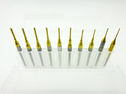 SHINA 10 Titanium Coat Carbide 0.6mm-1.5mm End Mill Engraving Bits CNC Rotary Burrs Set(ST0.6-1.5mm-10Ti)