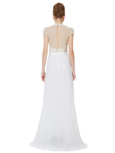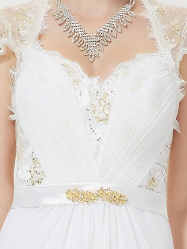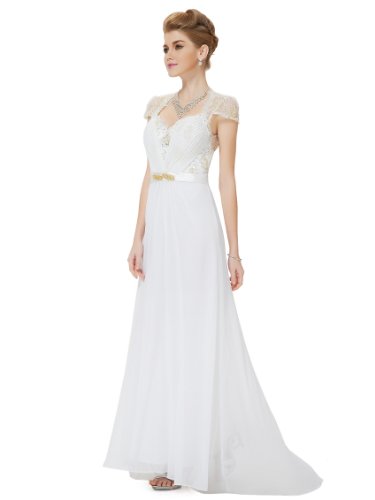 Gorgeous, sheer lace, open back, cap sleeve perfect for your most formal occassions. The elegant trailing evening dress is perfect for attending any black tie affair or even a formal wedding. The dress features figure flattering ruching in the bust area meeting at the waist with a removable rhinestone embellishmentFeature