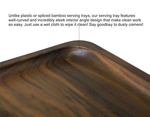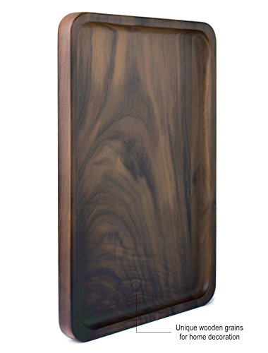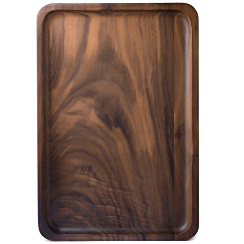 Studio : Bamber Publisher : Bamber Product Description Must-Know - We have three sizes and editions for option: Bigger Size (new release) > Portable Size > Mini Size. Do not mix them up. - Our serving trays are not one-piece wood made but spliced horizontally in order to save the precious forest resources and conserve the old-age trees, as well as considering that one-piece trays are much easier to crack or warp compared to spliced ones. - Please pay attention to the dimensions of the items. They may not be as large as you expect since they are all designed for high portability. - Food-grade coating on product surface is applied for mildew proof or bacteria growth during long-distance transport though all material of our products have been fumigated. - Every handcrafted wooden product of Bamber differs a bit from each other in terms of grains or colors due to the difference of tree-age and their growing environments, or tree burls may exist in our products as our products are constructed of natural wood. - The color of pictures on display may deviate slightly from that of real products due to the effect of shooting light. - The color of the BEECHWOOD item will go deeper if soaked by water, but this will not affect the use. - Collisions between products during shipping may lead to white marks on WALNUT items due to the properties of black walnut. Product Description - Brand: Bamber - Item Name: Rectangular Serving Tray - Material: Black Walnut - Dimensions: 13.39' X 9.06' X 0.79' - Craftsmanship: Hand Burnishing, Polished, Finished - Features: Natural, Eco-friendly, Premium, Decorative, Durable, Easy-to-clean, (Non-stick) - Pattern: Natural Grains, Sleek and Smooth Surface - Occasions: Wedding, Birthday, Party, Indoor and Outdoor Use, Christmas Gift, Housewarming, etc. 0
