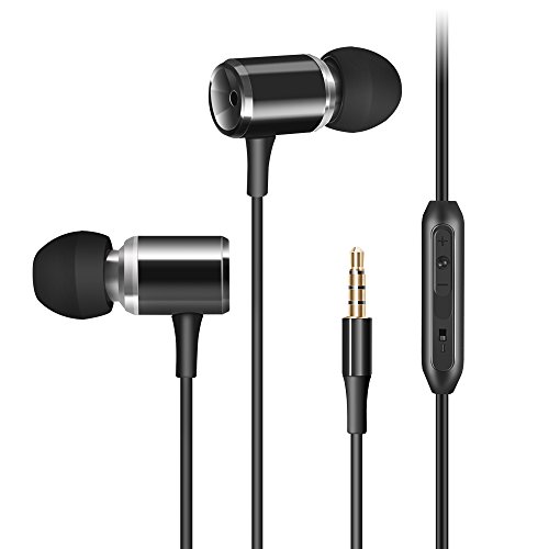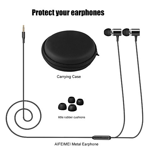 Wired Metal Earphones AIFEIMEI In-ear Heavy Bass Stereo Earbuds Headphones Volume Control with Mic Headset Sport Gym Running for iPhone iOS/Android 3.5mm jack +Carrying Case (BLACK)
