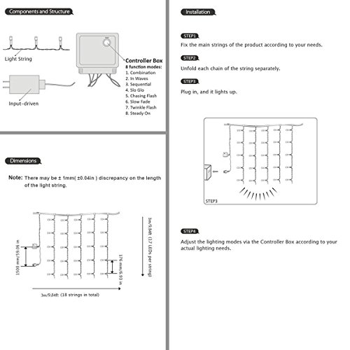 - 8 MODES TO CHOOSE: The lights have 8 different light patterns: Combination, In Waves, Sequential, Slo-glo, Chasing/Flash, Slow Fade, Twinkle/Flash, and Steady On. Different lighting effects are controlled by only one button.