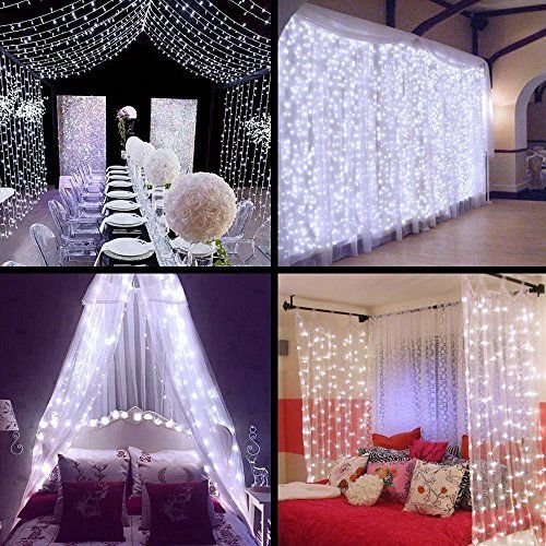 Ashialight LED Curtain String Lights- White Light LED Christmas Lights,20ft by 10 ft, 600 bright LEDs,8 Modes Controller,Plug in,Waterproof for Outdoor amd Indoor use
