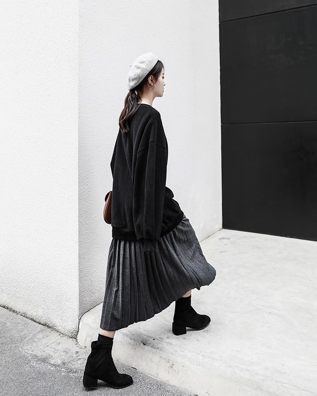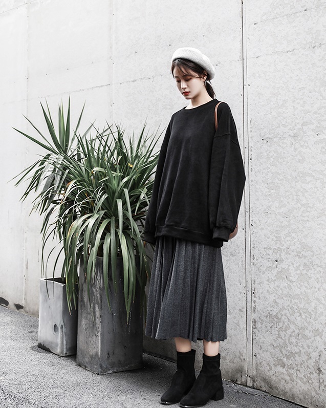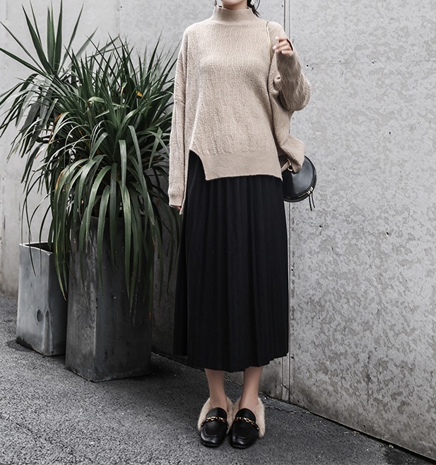 落ち着いたベーシックなワンカラーで、着まわし力バツグンのプリーツスカートです★