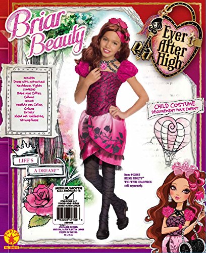 -. Binding : Toy -. Brand : Rubie's -. ClothingSize : One Size -. Color : multi-colored -. Department : unisex-child -. Feature : Tights and costume dress with printed necklace / Briar Beauty wig, boots and other accessories available separately from Rubie's Costume Company / Rubie's brings fun to dress-up with costumes and accessories kids play with all year long / Child large best fits children 10 to 12 years old, up to 60 Inch tall -. IsAdultProduct : 0 -. Label : Rubies - Domestic -. Manufacturer : Rubies - Domestic -. Model : 884910_L-Parent -. MPN : R884910 -. NumberOfItems : 1 -. PackageQuantity : 1 -. PartNumber : R884910 -. ProductGroup : Toy -. ProductTypeName : CHILDRENS_COSTUME -. Publisher : Rubies - Domestic -. Size : X-Large -. Studio : Rubies - Domestic -. Title : Rubies Ever After High Child Briar Beauty Costume -. Warranty : No Warranty