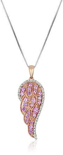 -. Binding : Jewelry -. Brand : Amazon Collection -. Department : womens -. Feature : Diamond: .02 cttw, I-J Color, I3 Clarity / Gemstones may have been treated to improve their appearance or durability and may require special care. / All our diamond suppliers confirm that they comply with the Kimberley Process to ensure that their diamonds are conflict free. / Imported -. Label : Amazon Curated Collection -. Manufacturer : Amazon Curated Collection -. Model : F0027V8LPGJ1 -. MPN : F0027V8LPGJ1 -. PartNumber : F0027V8LPGJ1 -. ProductGroup : Jewelry -. ProductTypeName : FINENECKLACEBRACELETANKLET -. Publisher : Amazon Curated Collection -. Studio : Amazon Curated Collection -. Title : 10k Pink Gold Created Pink Sapphire and Diamond-Accent Angel Wing Pendant, 18"
