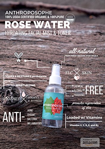 -. Title : USDA Certified Organic Rose Water Face Spray by ANTHROPOSOPHE: Certified by USDA & ECOCERT; Anti-Aging, Moisturizing & Pore Minimizing Toner, 4 fl. oz.