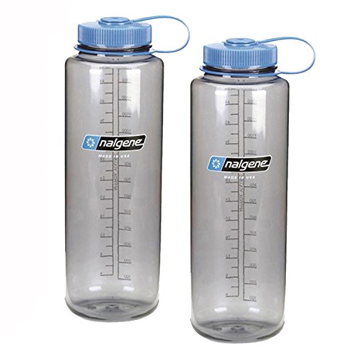 Nalgene Wide Mouth Bottle, 16oz, Gray Bottle with Light Blue Cap, Set of 2