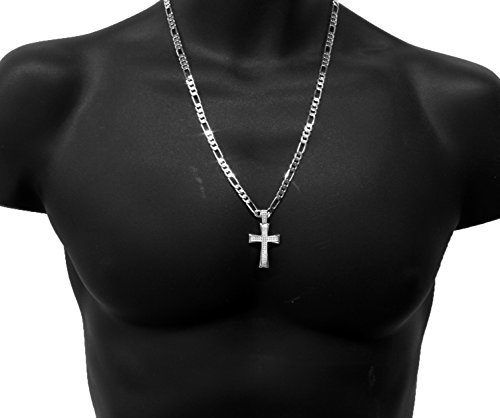 -. Binding : Jewelry -. Brand : L & L Nation -. Department : Mens Jewelry -. EAN : 0739680341508 -. Feature : Attention: Please keep in mind that this item is NOT REAL White Gold. / 24 inches LONG, 5mm WIDE Figaro chain with lobster claw clasp / Pendant Measurement: 1-5/8" x 7/8" -. ProductGroup : Jewelry -. ProductTypeName : FASHIONNECKLACEBRACELETANKLET -. Title : Mens White Gold Tone Fully Cz 2 Line Shade Cross Pendant Hip-Hop 24" 5mm Figaro Chain -. UPC : 739680341508