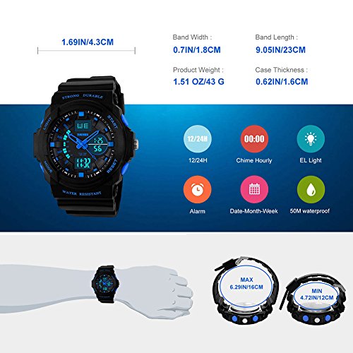 MULTI-FUNCTIONAL BOYS WATCH: This Kids Digital Watch Has Various Functions: Alarm, Stopwatch, Dual Time Date, Week And Calendar, EL Back Light, Perfect For Sports And Daily Wear.