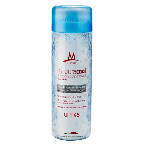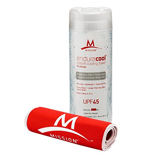 The Mission Enduracool towel is made from a proprietary performance fabric that instantly cools when wet with water or sweat, wrung out and snapped in the air to activate the sustained cooling properties.