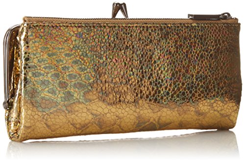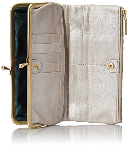 -. Feature : Snap closure / Kiss lock frame coin section and exterior zip compartment / Id pocket and 11 credit card slots / 2 bill pockets plus a slip pocket