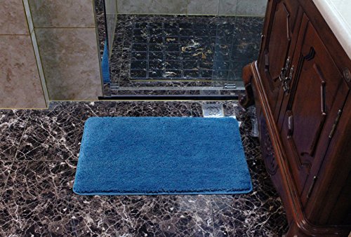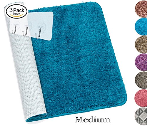 Yimobra Bathroom Mat Luxurious Non slip High Absorbent Bath Rugs Soft Medium Size 27.5 X 17.8 Inch Blue with Wall Hooks 3 Pack