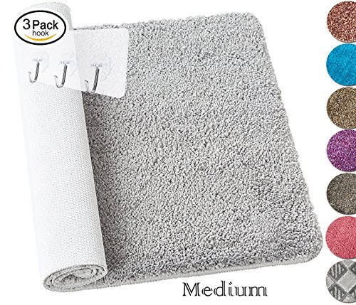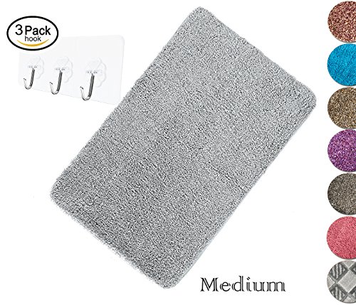 Yimobra Non-slip Bath Rug Microfiber High Absorbent Soft Bath Mat 27.5 X 17.8 Inch Gray with Wall Hooks 3 Pack