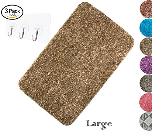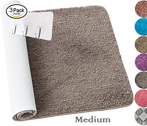 Yimobra Soft Bathroom Rugs Non slip Shower High Absorbent Machine Washable Bath Mat Medium Size 27.5 X 17.8 inch Brown with Wall Hooks 3 Pack