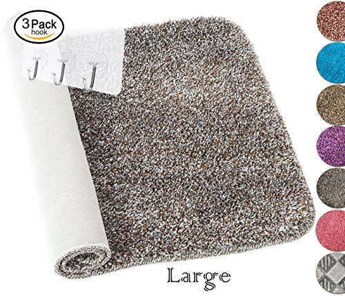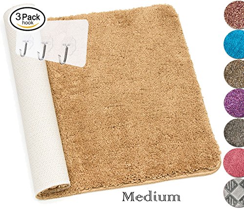 Yimobra Non-Slip Bath Rug Microfiber Super Absorbent Anti-Skid High Soft 27.5 X 17.8 Inch Khaki Beige free Wall Hooks 3 Pack
