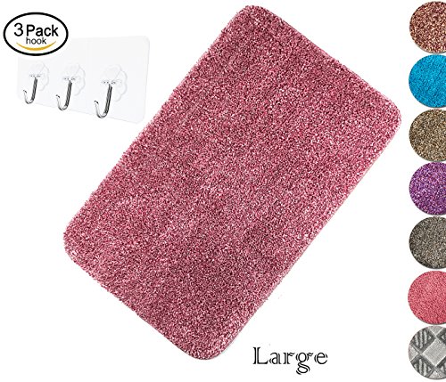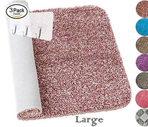 Yimobra Bathroom Rugs Large Non slip Maximum Absorbent Soft 31.5 X 19.8 Inch Pink with Red free Wall Hooks 3 Pack