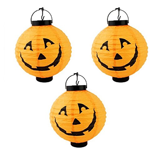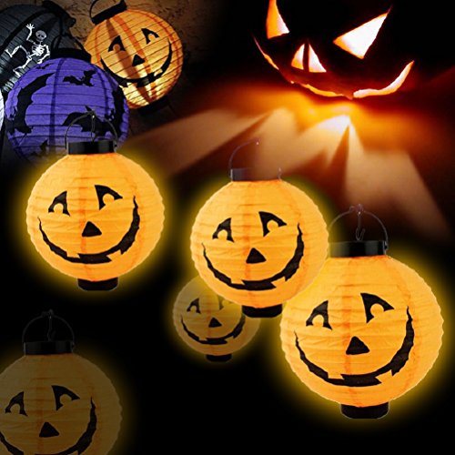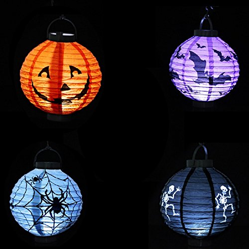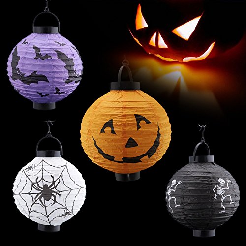 -. Title : Jinon New Halloween LED Paper Pumpkin Hanging Lantern DIY - Holiday Party Decor Scary Light Spider Bat Skeleton Lamp