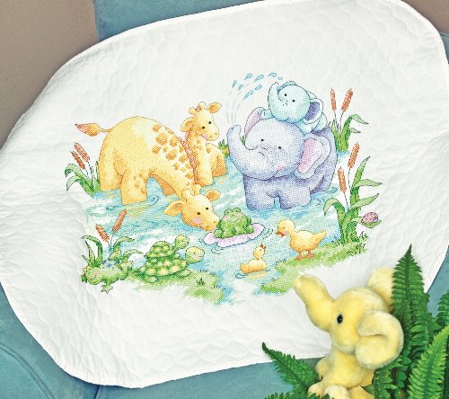 Sweet baby animals celebrating in a cool pond are perfect for any nursery. The Dimensions Little Pond Quilt in stamped cross stitch makes a heartfelt gift. Kit contains presorted thread, printed white cotton, a needle and easy to follow instructions. Finished size 43-Inch-by-34-Inch.Feature