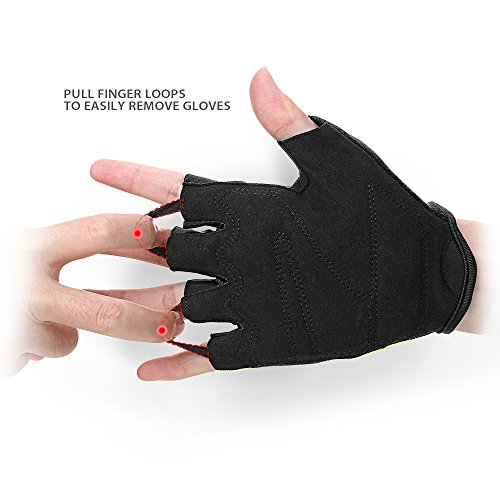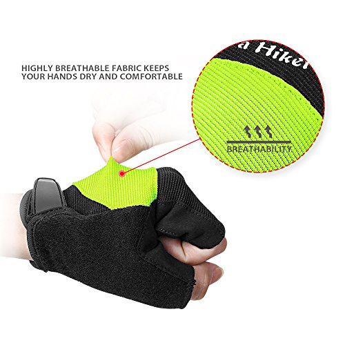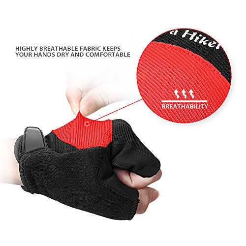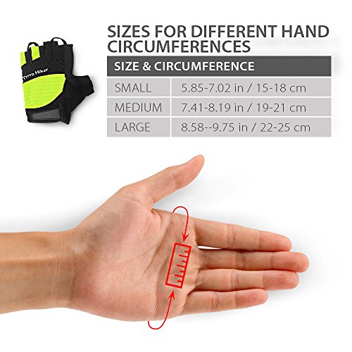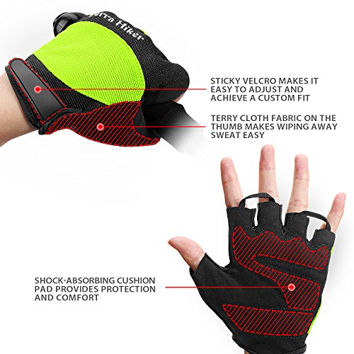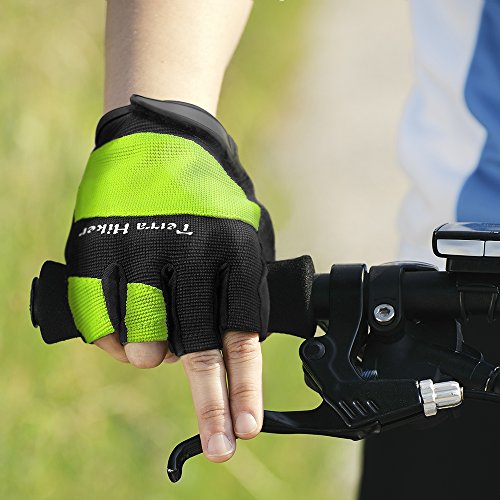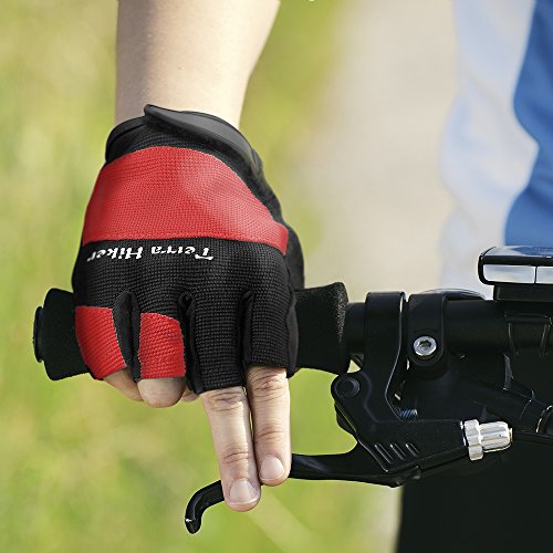 -. Feature : SHOCK ABSORPTION PADDING: Terra Hiker sports gloves are durable and abrasion-resistant; absorbs impacts, enhances comfort and increases friction to prevent slipping; effectively protects your palms and wrist joints if falls occur / WATER-REPELLING & BREATHABLE PALM FABRIC: Terra Hiker cycling gloves keep your hands dry and comfortable; made by tear-resistant material; towel-cloth fabric on the thumb makes it easy to wipe sweat / VELCRO CLOSURE: Easy to adjust to a custom fit; prevents foreign materials from entering the gloves; prevents chill and locks in warmth / EASY TO TAKE OFF: Pull loops on the fingers make it easy to take off the gloves and reduces the likelihood of losing them; ideal for outdoor activities / LIGHTWEIGHT & COMPACT: Terra Hiker racing gloves weigh only 0.11 lb / 50 g; ensure maximum freedom of movement along with excellent fit