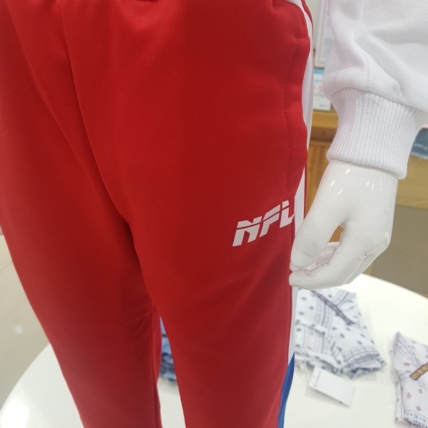 NFL 가을 신상품 !좌/우 컬러블록 절개가 들어간 트레이닝 팬츠. 로고 나염이 원포인트로 들어감. 약기모가 있어 보온성이 좋음 !
