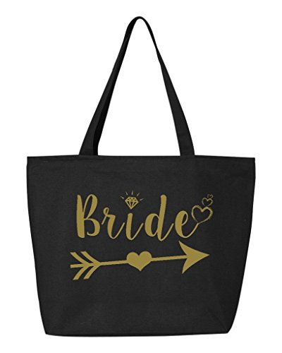 Shop4Ever Bride Heart Arrow Gold Heavy Canvas Tote with Zipper Wedding Reusable Shopping Bag 12 oz Black 1 Pack Zip