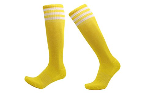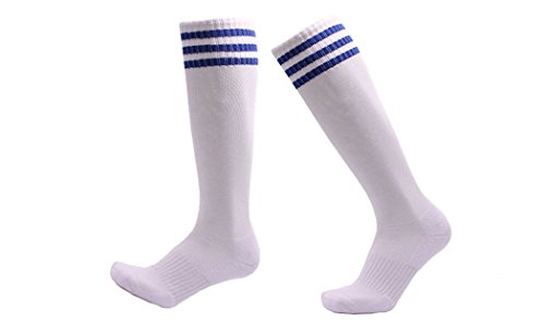 -. Feature : 70% combed Cotton,15% Polyester fiber,10% Spandex,5% Rubber / Strong elastic,Machine Wash / SMALL: Total length: about 50cm/19.7in; Width:8cm; Sole length:17cm(could be stretch more) fit shoe size:30-34. MEDIUM: Total length: about 60cm/22.6in; Width:9cm; Sole length:19cm(could be stretch more)fit shoe size:35-38. LARGE: Total length: about 65cm/25.6in; Width:10cm; Sole length:20cm(could be stretch more)fit shoe size:39-44 / Bottom is Thick towel design, Anti-Slip and Suck sweat; Super Soft, Comfortable and Breathable Moisture Wicking Yarns help keep your feet cool and dry,Antimicrobials control bacteria and odor, comfortable to wear / Over Knee/Knee High socks with 2 stripes at the top, easy matching for most of your daily wearing. Perfect for teams as they comfortably fit. Whether you are playing a sport, such as football, soccer, softball, baseball, lacrosse, field hockey, volleyball, rugby, school uniforms and all kind of athletic activities, or adding them to a costume or simply want to put some flash into your outfit these socks are the perfect choice