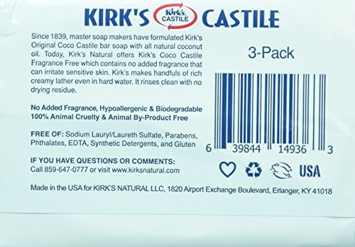 Since 1839, Kirk's Original Coco Castile Soap has given the consumer a high quality, natural soap at an affordable price. "Castile" originally referred to the highly-prized vegetable based soap produced in Castile, Spain. For centuries this soap was considered "the soap of royalty" because of its luxurious lather and gentleness to the skin. Today, "Castile" refers to any vegetable based soap.No Animal By-ProductsNever Tested on AnimalsHypoallergenicBiodegradableNo Synthetic DetergentsFeature
