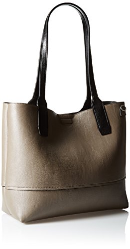 Faux-leather reversible tote bag with dual shoulder straps featuring detachable zippered pouch pocket