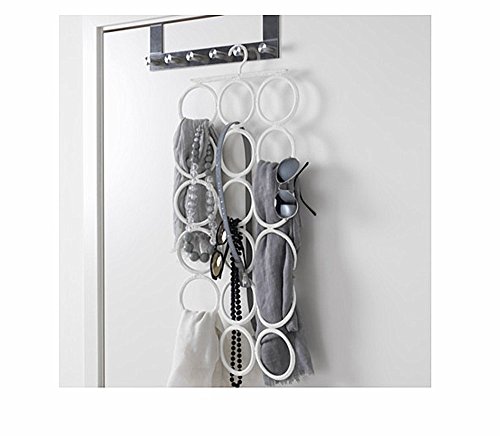 - “PERFECT SIZE” & “STURDY” 18 large rings (3.5in wide) hold over 2 dozen Scarves, Ties and Fashion Accessories, great holder for leggings, camisoles, undergarments.