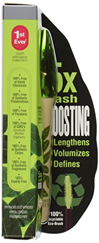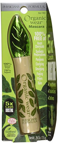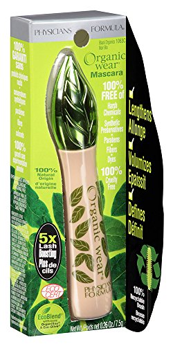 Physicians Formula Organic wear 100% Natural Origin Mascara contains the purest ingredients and provides 5x lash boosting for lash length, volume and definition naturally. The 100 percent recyclable eco-brush defines each lash with ultra-soft plastic bristles. 100 percent free of harsh chemicals, synthetic preservatives, parabens, clumping, smudging, flaking, fibers and dyes.Feature
