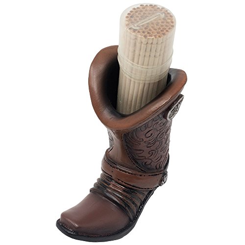 Studio : DWK Corp. Publisher : DWK Corp. Product Description Let your toothpicks saddle up in this fancy cowboy boot toothpick holder! This fun country western decoration is patterned after a cowboy boot, and embellished with a Western medallion and spur. Made from durable polyresin with fine attention paid to detailing, this decorative cowboy boot would make a great addition to your Wild West decor. Also, makes the perfect gift for that special cowboy or cowgirl on your shopping list. 0