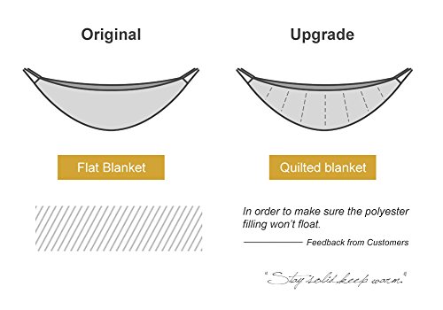 KEEP YOU WARM: Upgraded our underquilt from flat blanket to quilted blanket, keeps the polyester filling stay in place and won't float; Designed to fit snugly to the outside of your hammock keeping you warm and toasty in the cool weather