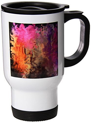 Studio : 3E Rose (Kitchen) Publisher : 3E Rose (Kitchen) Binding : Kitchen Product Description Abstract Pink and Orange by Angelandspot Travel Mug is a great way to take your favorite hot or cold drink along. With a tapered bottom this stylish 14oz mug fits in a standard cup holder and features an easy-grip handle with thumb rest, slide opening lid and slanted drinking surface. This travel mug is made of stainless steel. Not microwave safe, hand washing is recommended. 0