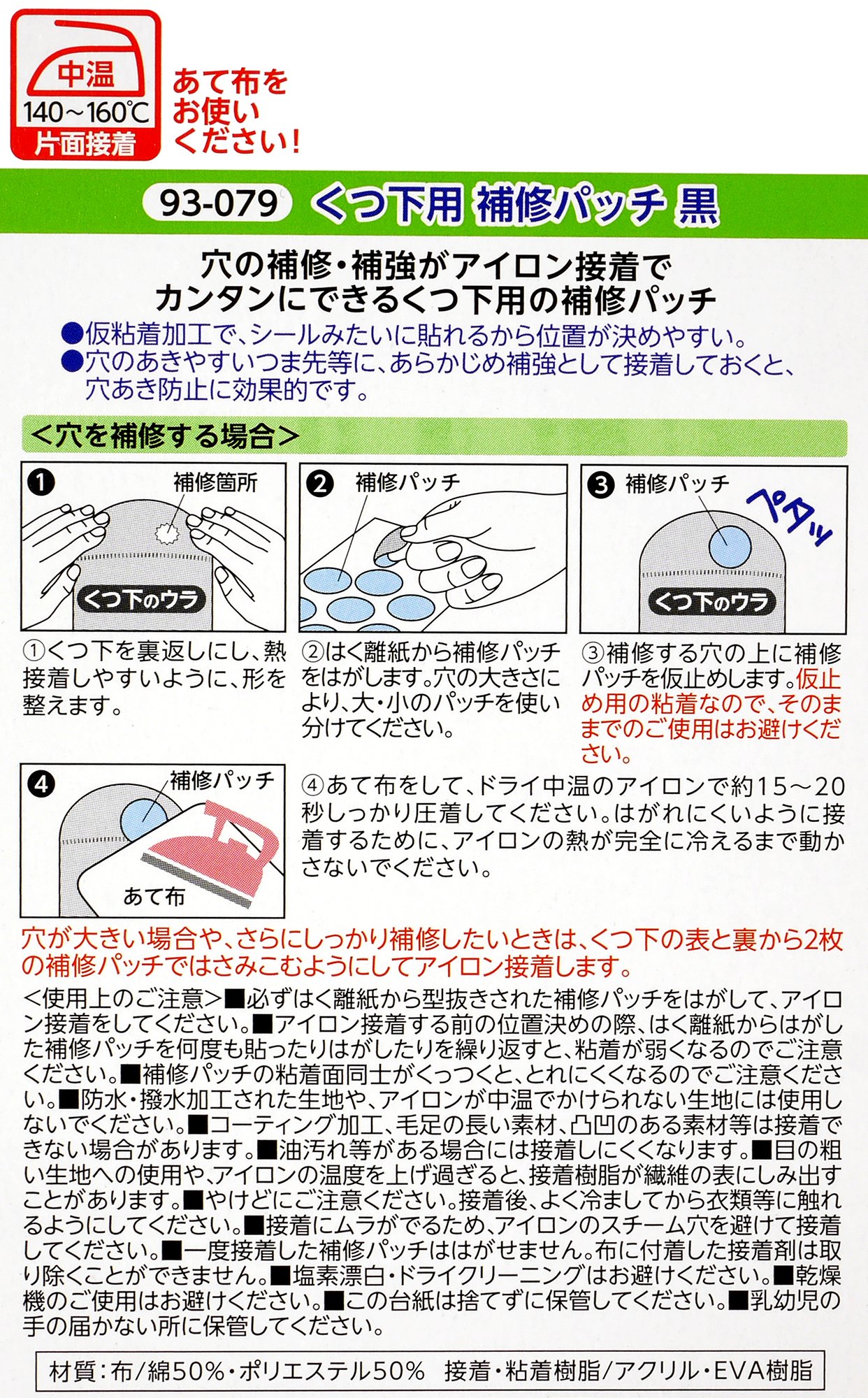 The repair and reinforcement of the hole in the sock mouth! Socks repair patch (black) 93-079 iron adhesion (japan import)