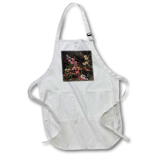 3dRose An Opulent Floral still Life with Fruit by Johan Laurentz Jensen - Full Length Apron, 22 by 30-Inch, Black, with Pockets (apr_126482_4), 22 X 30 Inch