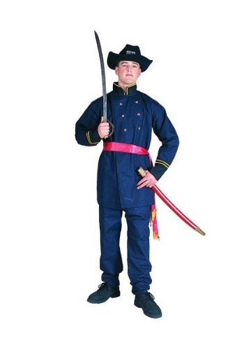 -. Brand : RG Costumes -. Color : Solid -. Department : mens -. Feature : Adult Union Officer Costume includes Jacket, Pants and Sash. (sword, scabbard, hat and shoes not included) / Navy Blue w/ Black and Gold accents. 100% Flame Resistant Polyester (machine washable) / Per Mftr. Std. Size Adult (36-40 Jacket Size) / Pants: elastic waistband, narrow gold stripe down sides of leg, linen-like fabric; Jacket: velcro tabs at top open and jacket slips on, mock gold buttons on front, set on collar and cuffs, gold stripe accents collar and cuffs; Sash ties around waist -. Label : RG Costumes -. Manufacturer : RG Costumes -. MPN : 80102 -. PackageQuantity : 1 -. PartNumber : 80102 -. ProductGroup : Apparel -. ProductTypeName : ADULT_COSTUME -. Publisher : RG Costumes -. Studio : RG Costumes -. Title : Adult Union Officer Costume - Sword, scabbard, hat and shoes not included.