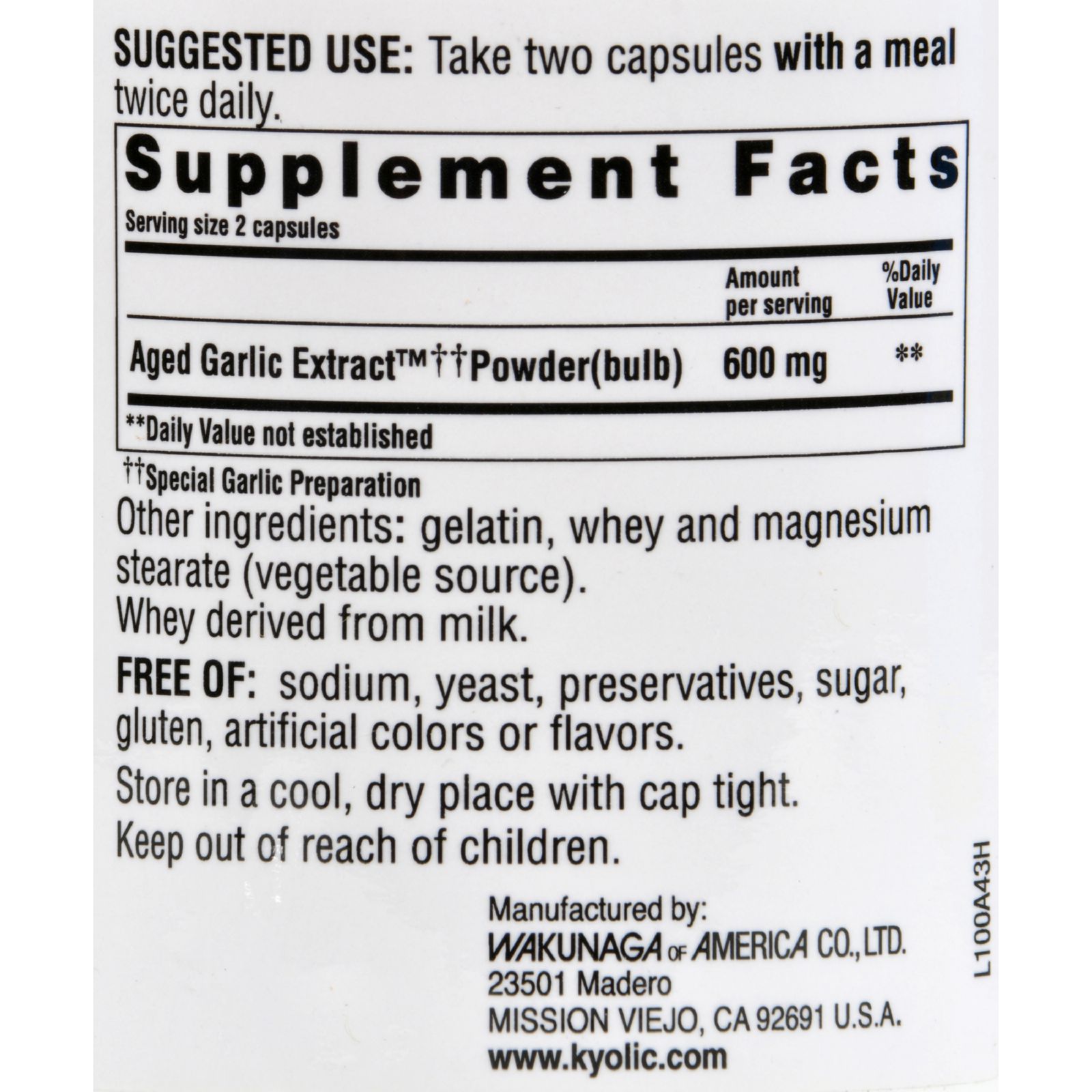 설명 : - 유기농 마늘 추출물 - 심장 혈관 건강 지원 - 냄새가 나지 않는 영양보조 식품 - 콜레스테롤 레벨 - GMP 품질 보증 - 면역 기능, 간 기능 및 신경 Kyolic 의 Aged Garlic Extract 심장혈관 건강 포뮬라는 100% 유기농으로 재배된 마늘로 만들었습니다. 유기농으로 재배된 마늘은 Kyolic 제품에서만 찾아볼 수 있는 건강에 좋은 성분을 만들고 냄새를 제거하기 위해 특별한 추출과정을 거쳐 완벽하게 숙성됩니다. 이 제품은 혈액순환과 전반적인 심장 건강을 관리해 줌으로써 심장혈관 기능을 강화 시켜줍니다. (미국의 3대 유기농 인증기관인 CCOF:California Certified Organic Farmers에 준수함). Kyolic 의 Aged Garlic Extract 심장혈관 건강 포뮬라는 과학 연구를 가장 많이 거친 제품으로써 최고의 품질을 자랑하는 베스트 셀러 제품 입니다. 나트륨, 효모, 방부제, 설탕, 글루텐, 인공 색소 나 향료의 무첨가 면책사항: 본 제품설명은 미국식약처에 의해 검증되지 않았으며, 이 제품은 질병의 진단, 치료, 치료 또는 예방되는 것은 아닙니다. Ingredients : One tablet/capsule provides 300mg aged garlic extract powder, 168mg whey, 20mg align, 7mg cellulose and 5mg magnesium stearate. Gluten Free : Yes Size : 300 CAP Pack of : 1 Product Selling Unit : each |