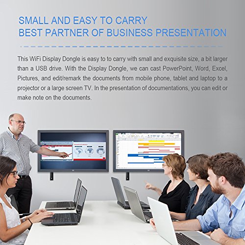 Enlarge Your Screen. This WIFI HDMI display dongle can transfer digital mode contents from smart devices(mobile phones, tablets, notebooks,etc) to display devices(HDTV, Projector, etc.) with HDMI connector. It allows you to enjoy videos/audios/pictures on large screen.