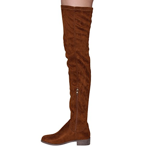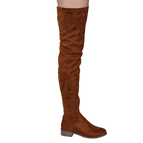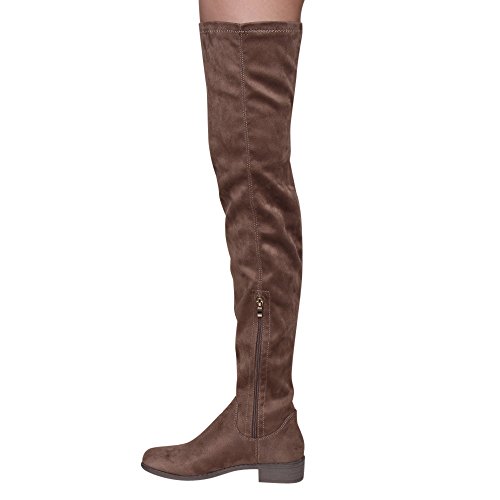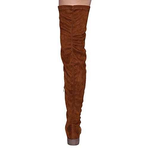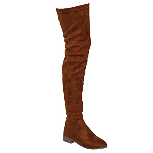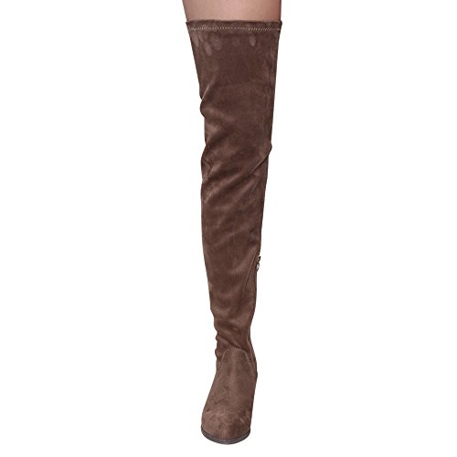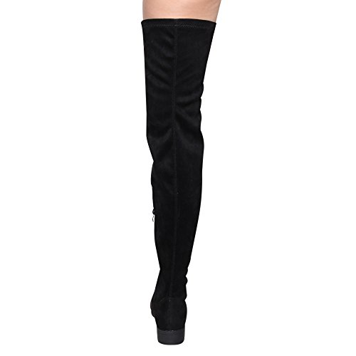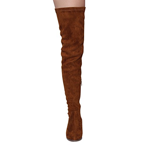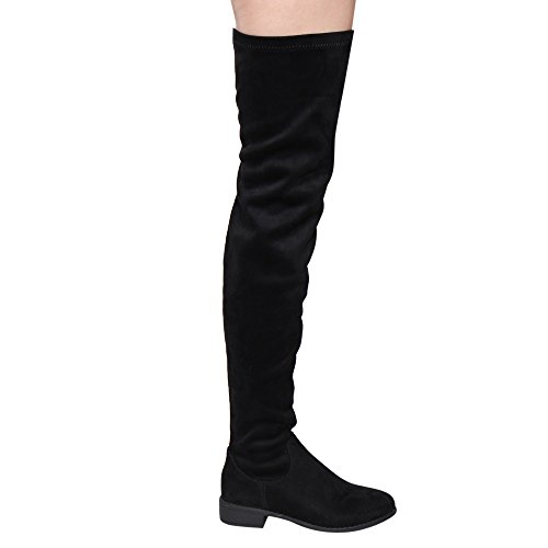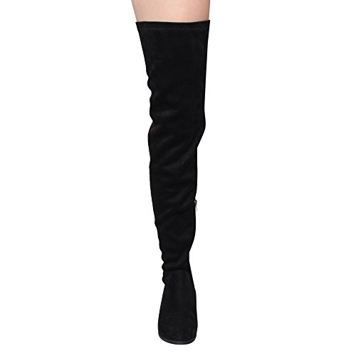 NATURE BREEZE FF05 Women's Stretchy Thigh High Snug Fit Low Block Heel Boots