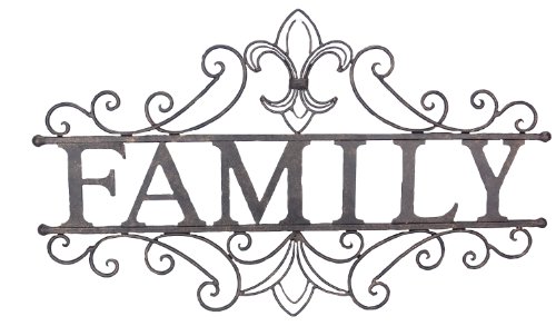Young's Inc. 24.25" Family Welcome Metal Wall Sign. This wall sign simply states" Family" with its uniquely ornate design. Measures 24.25(L) 0.25(W) 14.75(H). Made of metal. Stylish decorative accent for any room decor. Great gift for family, friends, neighbors and acquaintances.