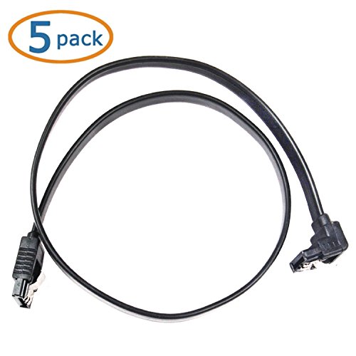 Sata Cable, WOVTE 18 Inch SATA III 6.0 Gbps Cable with Locking Latch and 90 Degree Plug Black Pack of 5