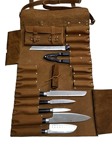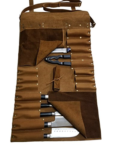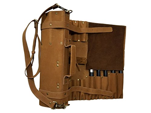 Lightweight Genuine Premium Leather 16 Slots Vintage Tan Chef Knife Bag/Chef Knife Roll