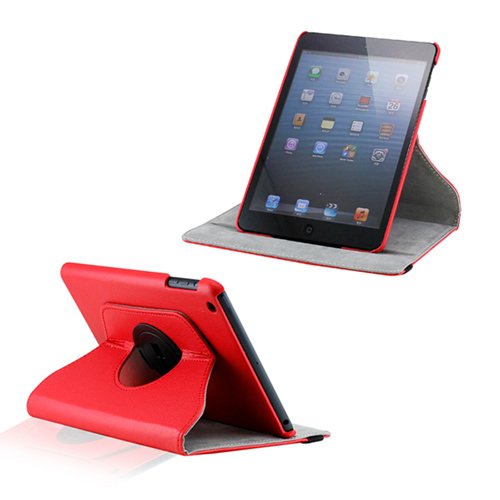 Gearonic Duel Function 360 Degree Rotating PU Leather Case Cover with Car Mount for iPad mini, Red (AV-6037RPUIB)