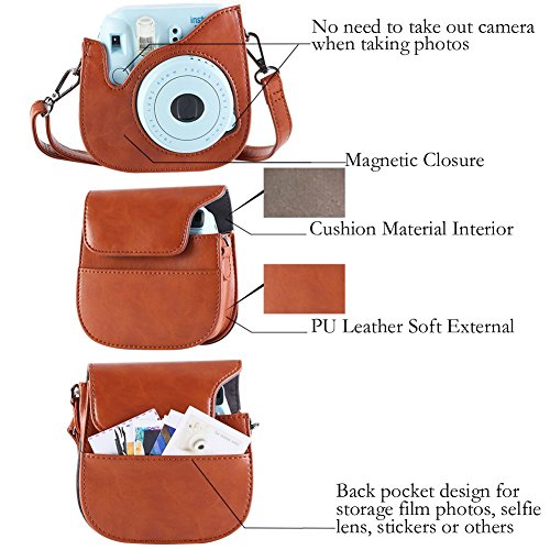 Protection by Camera Case: Make from PU leather material, compact, lightweight and extremely durable, protect your instax mini 8 camera from dust, scratches and damages. No need to take out the camera when taking photos. With this original non-slip adjustable Strap it is much easier to carry camera case when go out with your family. In addition to the original camera case strap, there is a another colorful neck strap that connects directly to your camera for easy use.